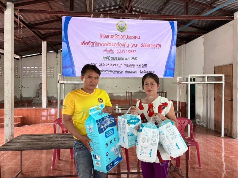 นายพีระพล นาที นายกองค์การบริหารส่วนตำบลกุดเพียขอม ลงพื้นที่ ร่วมกับโครงการสนับสนุนผ้าอ้อมผู้ใหญ่สำหรับบุคคลที่มีภาวะพึ่งพิงและบุคคลที่มีภาวะปัญหาการกลั้นปัสสาวะหรืออุจจาระไม่ได้ ประจำปีงบประมาณ 2567
