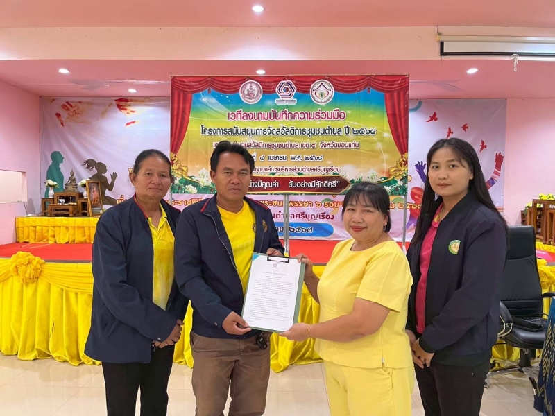วันที่ 4 เมษายน 2568 นายธีรศักดิ์ ติยะภา ประธานกองทุนสวัสดิการชุมชนตำบลกุดเพียขอม ร่วมเวทีลงนามบันทึกความร่วมมือ MOU โครงการสนับสนุนการจัดสวัสดิการชุมชนตำบล ปีงบประมาณ 2568