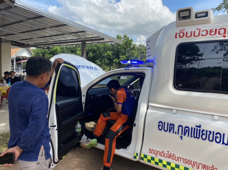 วันที่ 7 พฤศจิกายน 2566 เวลา 14.00 น. บริษัท ไทย ออโต้ ฟลีท จำกัด ได้ส่งมอบรถพยาบาลฉุกเฉิน (รถกระบะ) พร้อมอุปกรณ์ ให้คณะกรรมการตรวจรับพัสดุครุภัณฑ์ ได้ตรวจสอบคุณลักษณะถูกต้องตามแบบที่กำหนดหรือไม่ เพื่อจะได้ดำเนินการขอขึ้นทะเบียนเป็นรถบริการการแพทย์ฉุกเฉิน ถูกต้องตามกฏหมาย เพื่อให้บริการประชาชนในเขตพื้นที่ตำบลกุดเพียขอม ต่อไป